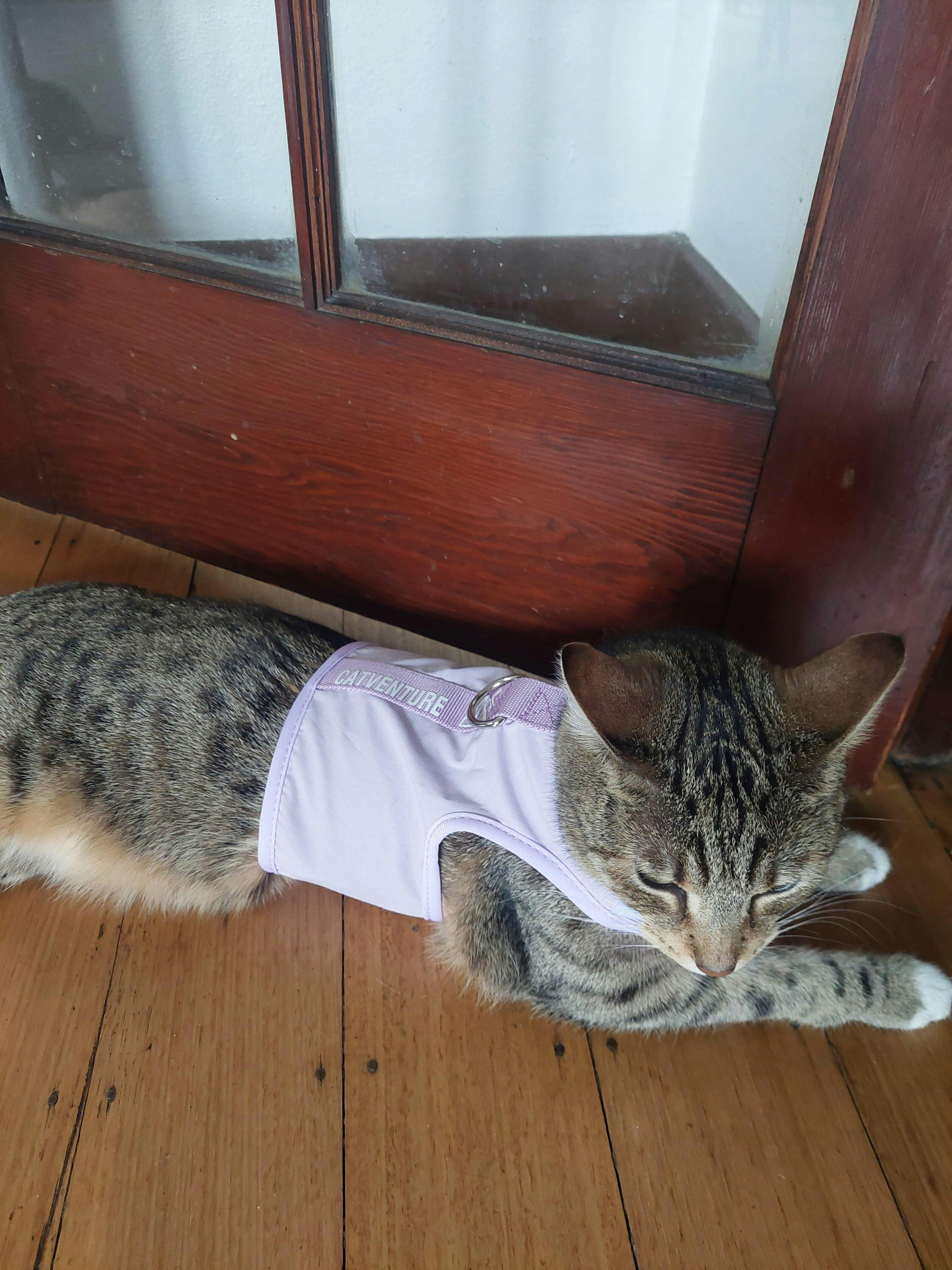 Walking in a harness provides mental and physical stimulation for the cat. Cats are known to become bored easily and can become destructive if they don't have enough mental and physical stimulation. Going for walks in a harness can provide the mental stimulation that comes with being in new environments, as well as the physical stimulation of walking and exploring. This can help prevent boredom and reduce destructive behavior.