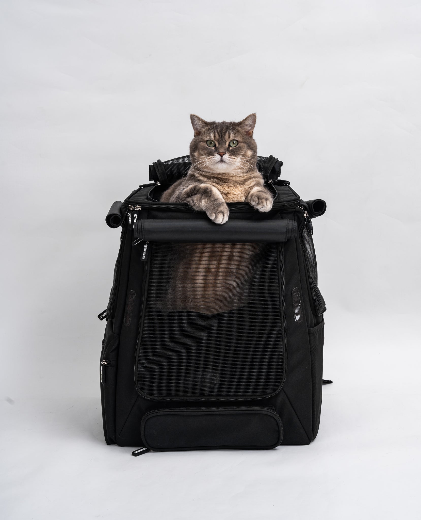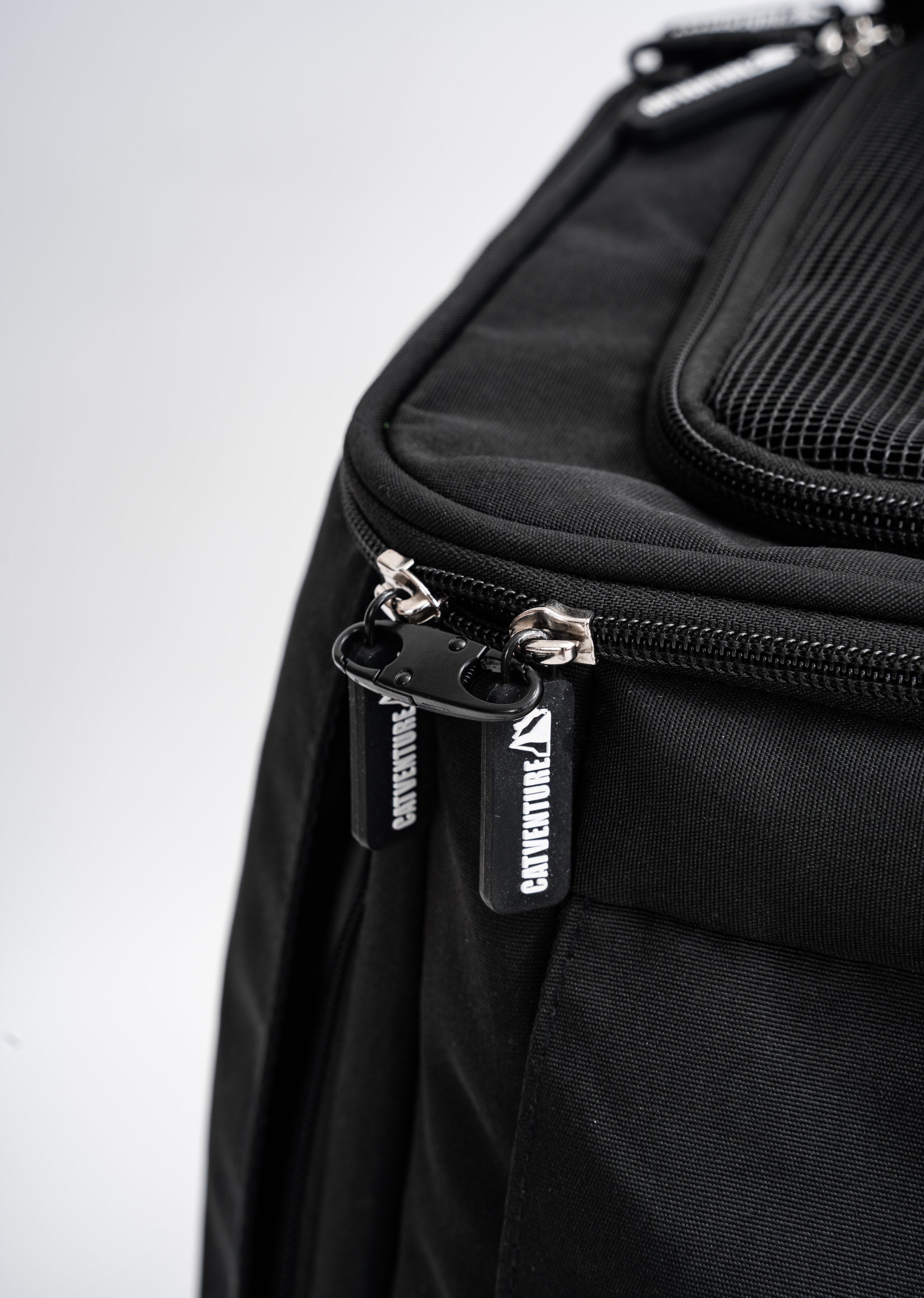Branding: Soft-touch silicone Catventure logo zip tag, waterproof and durable