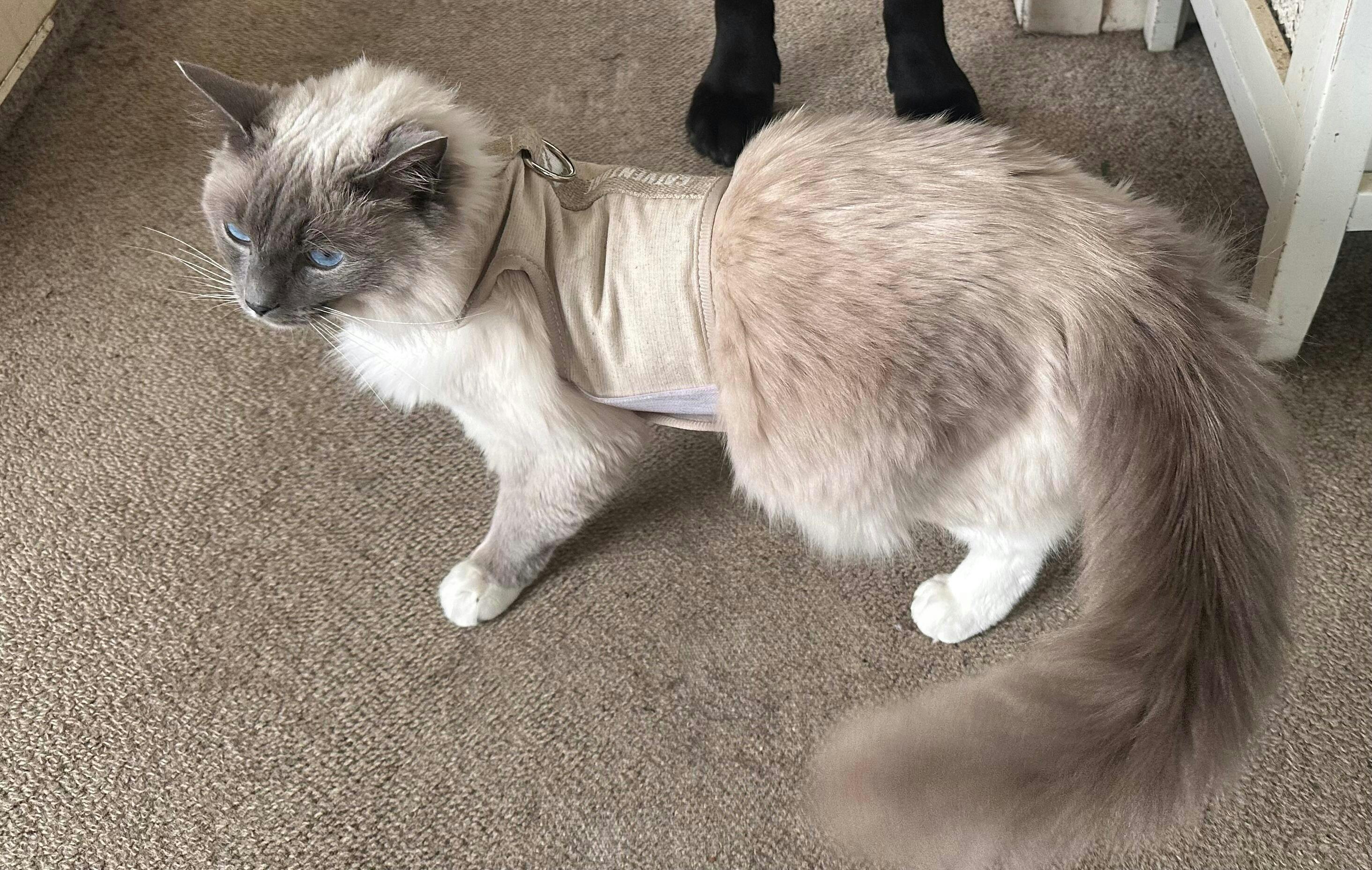 My cat looks so cute in his new harness <3 have been waiting for this colour for so long