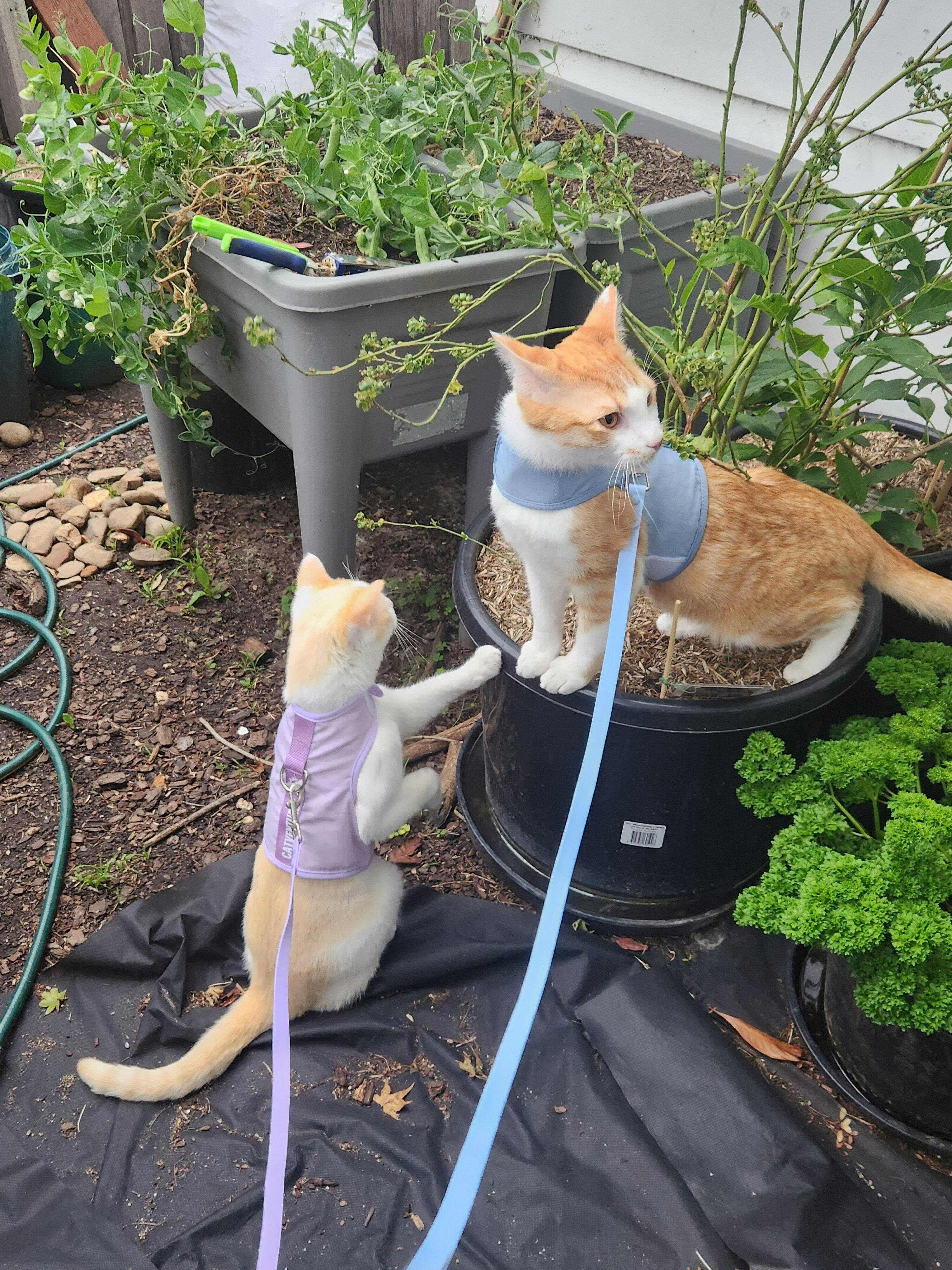 I bought two Catventure Escape-Proof Cat Harnesses (one medium, one large) for my 4-year-old rescue litter-mates. They are a sensitive pair and easily startled. We had limited success with traditional multi-clip leash sets—an exercise rather like nail clipping, based on bribery and anxious moments.