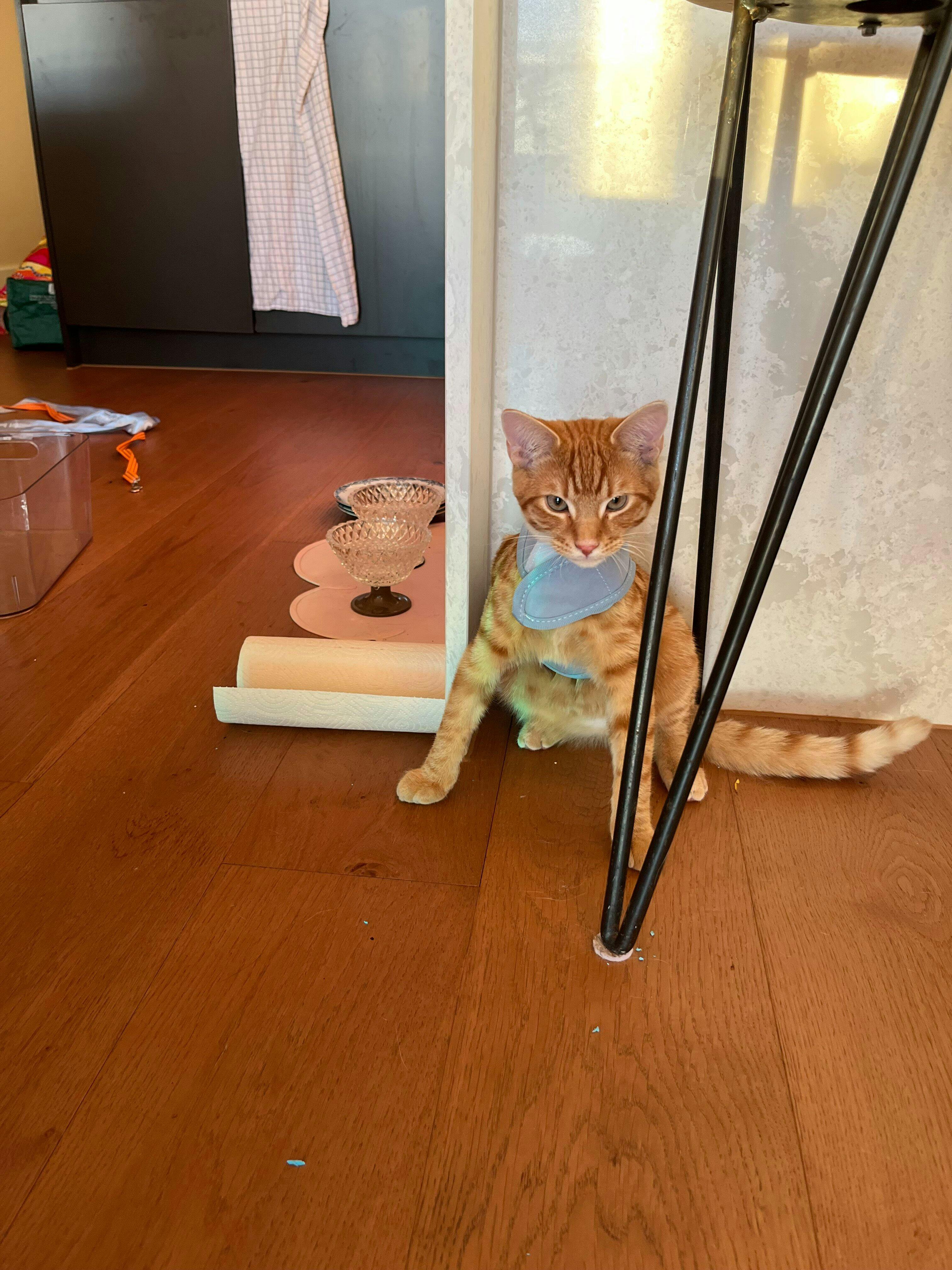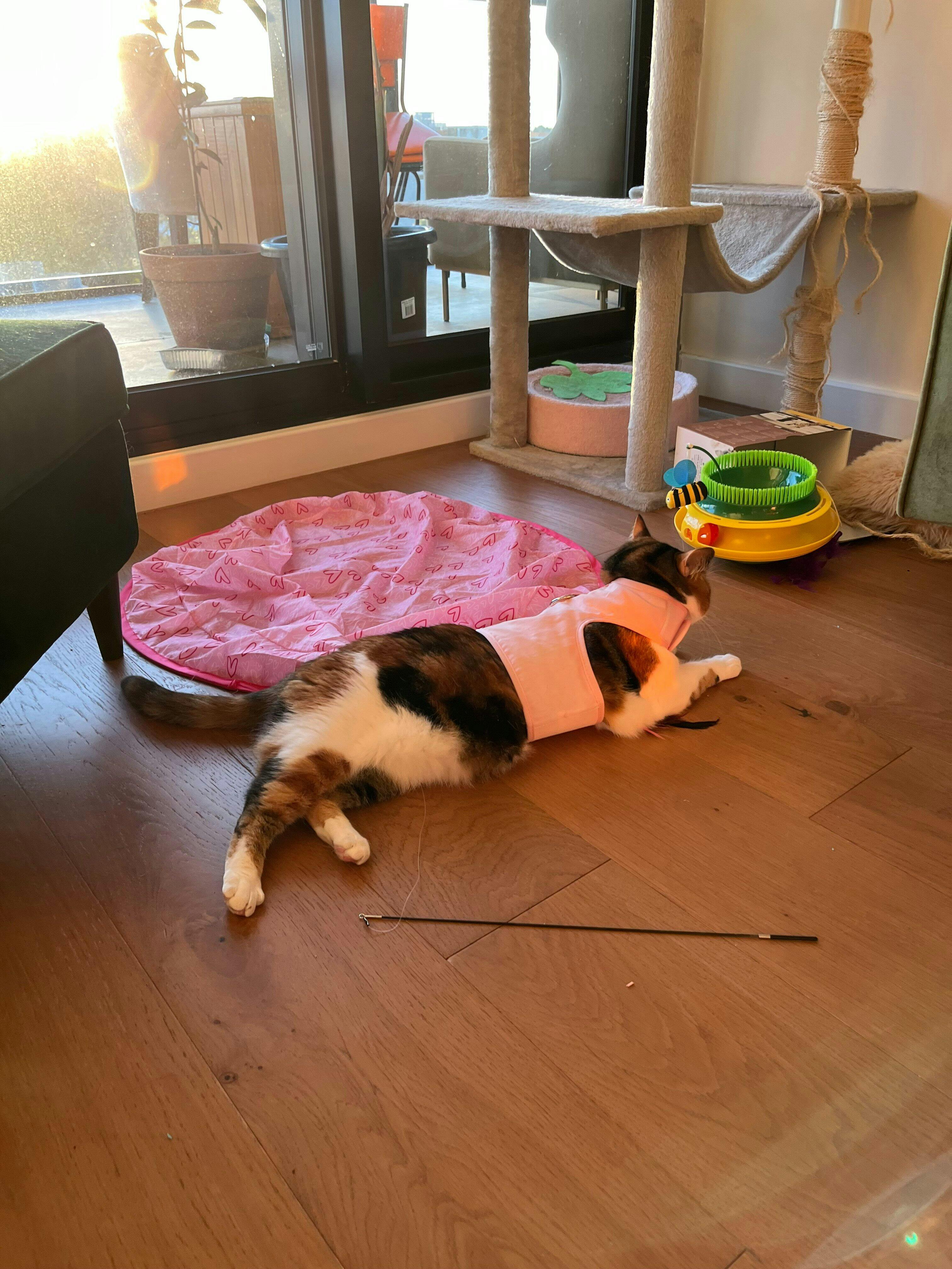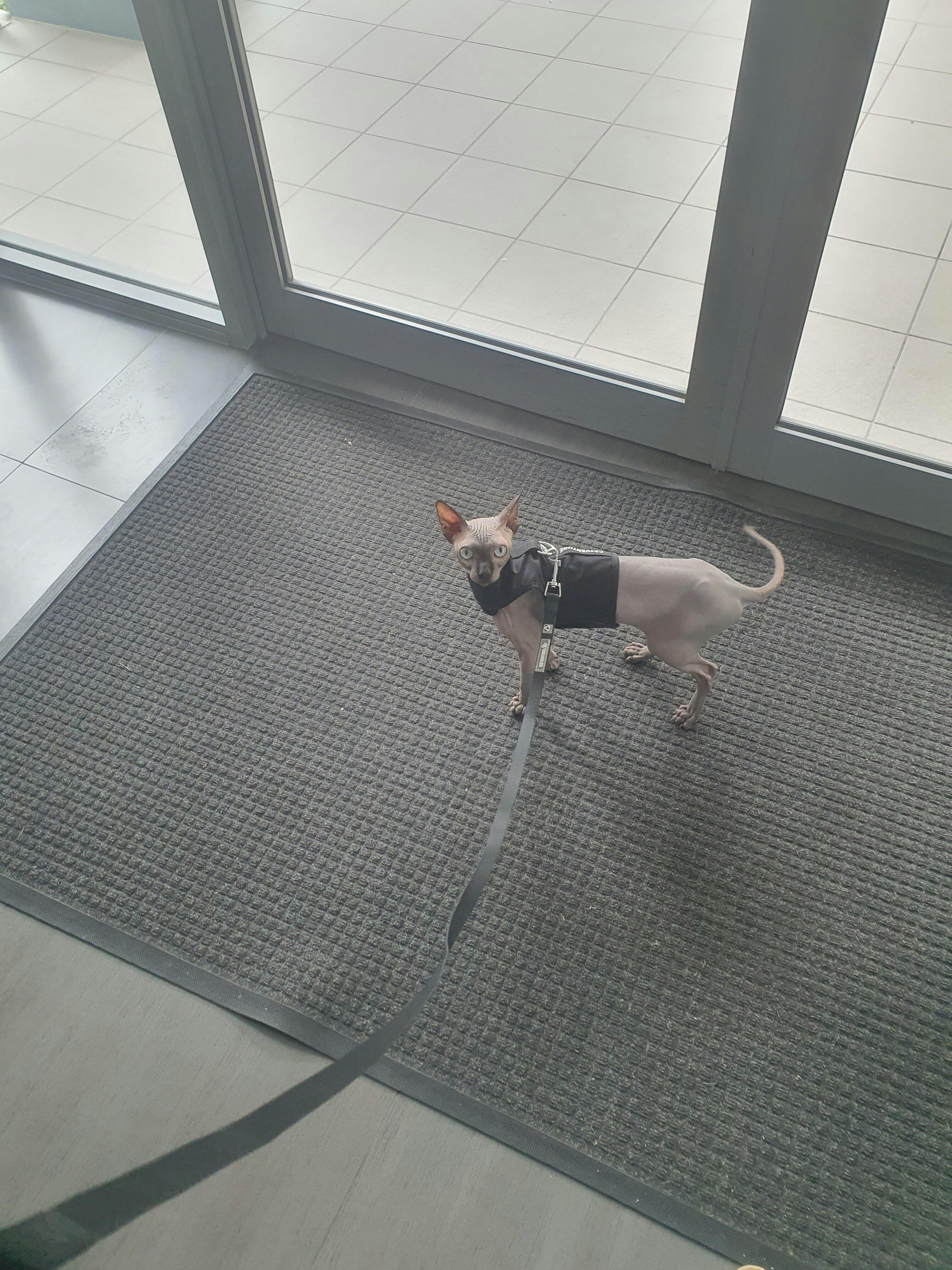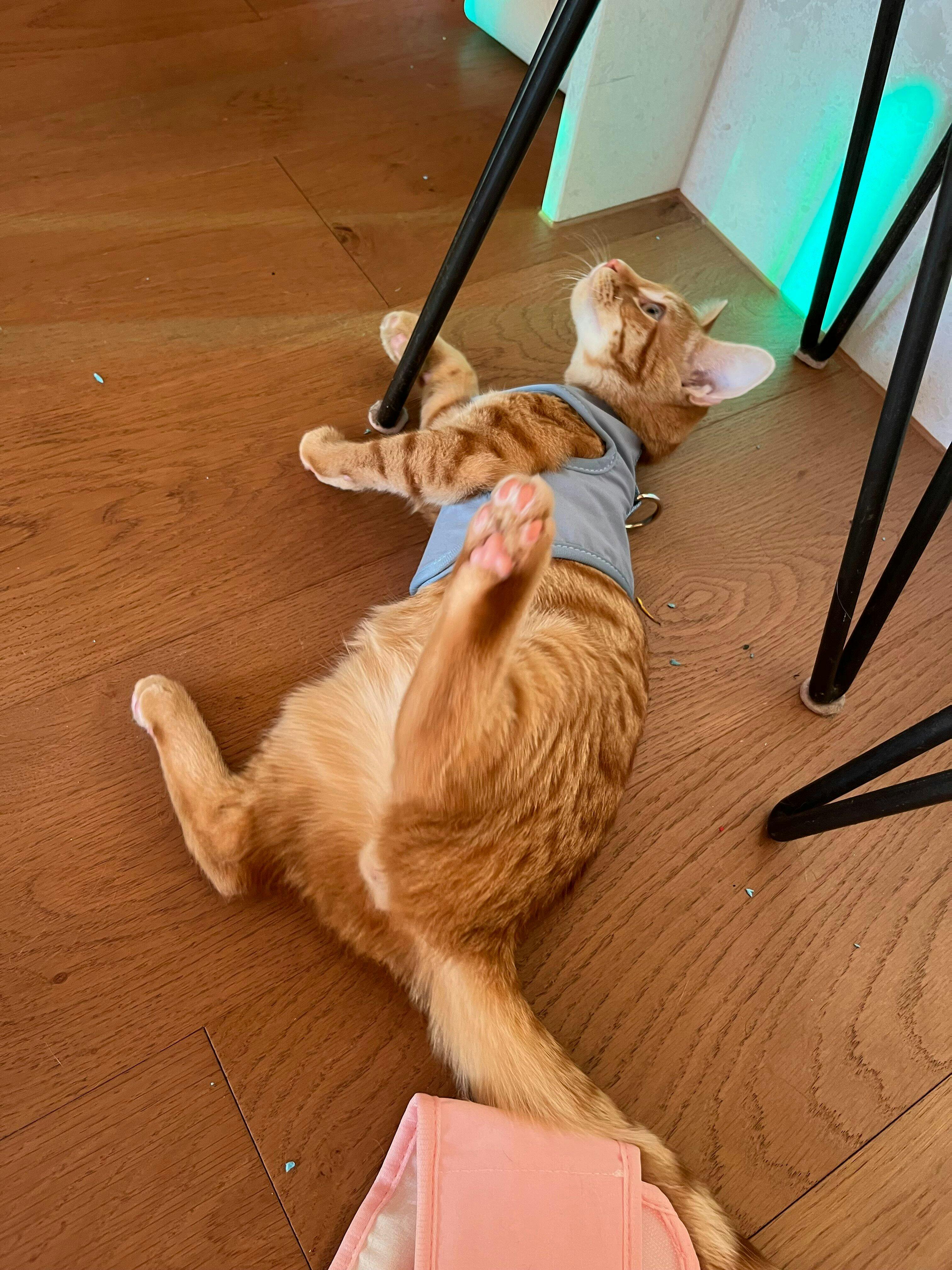 • Leave the cat harness out for your cat to sniff and inspect, place the harness somewhere familiar without invading their safe spaces. Once your cat is comfortable and has lived with the harness in their space, we recommend trying on the harness inside the home. Let them walk around in it inside the home before attaching the leash and taking your cats outdoors.