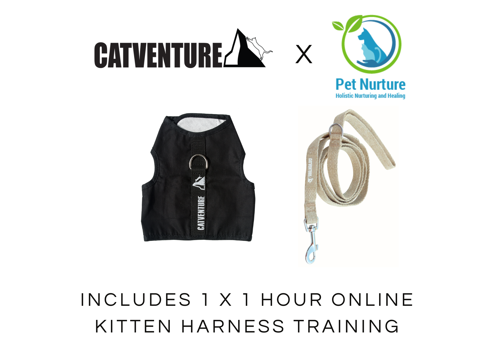 - 1 × 1-hour Online Kitten Harness Training Session via Zoom, Teams or your preferred video platform
