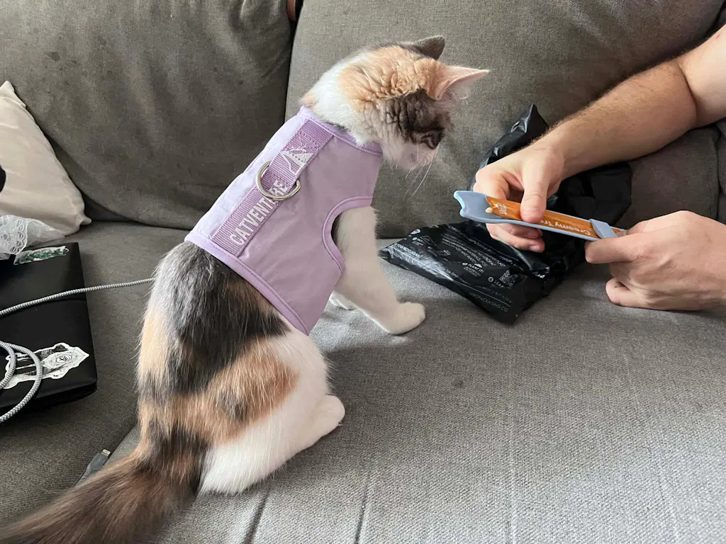 We created this to make harness training simple and positive from day one. During your session, Melina from Pet Nurture guides you through each step so your kitten builds confidence calmly and safely in their new Catventure harness.
